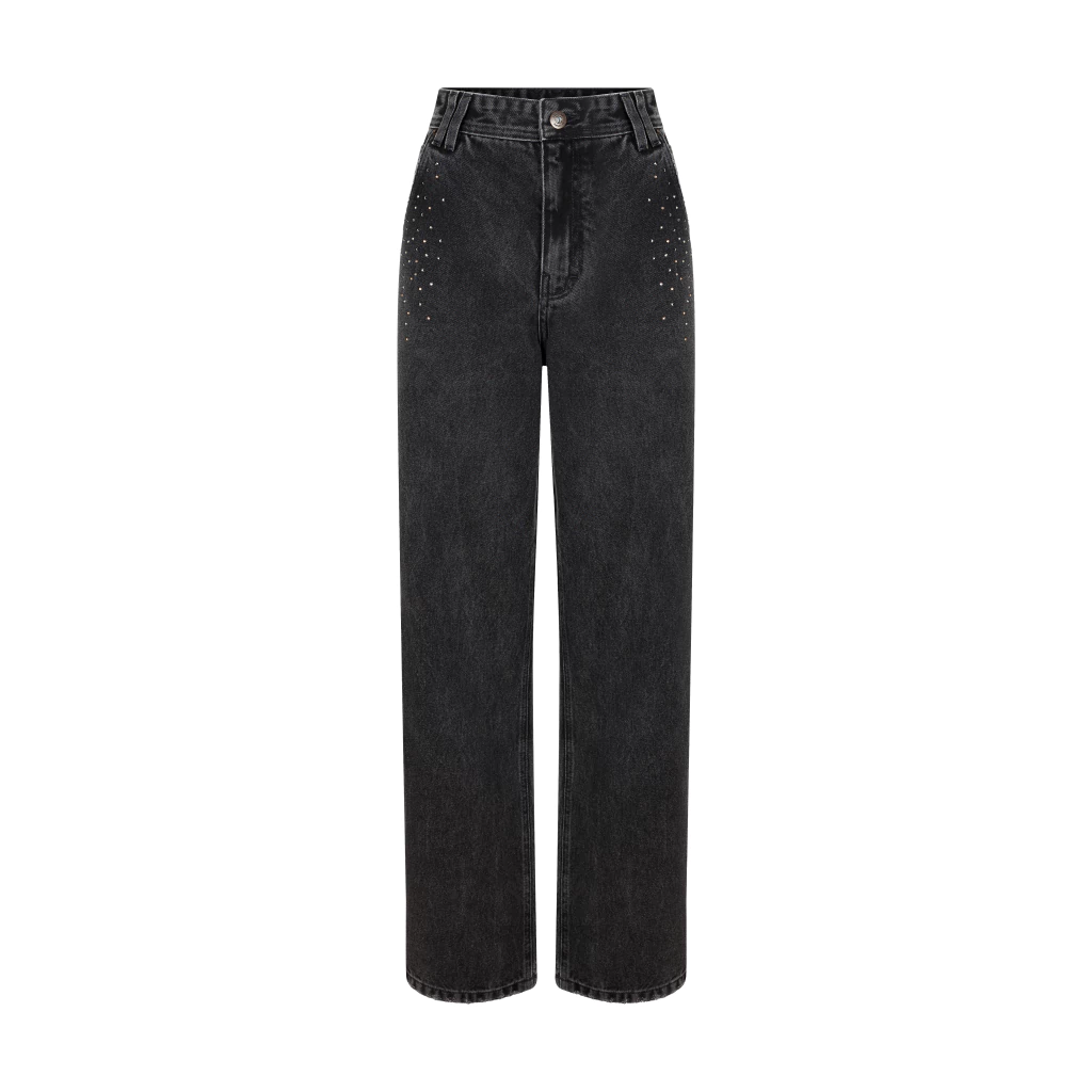 CALÇA GENDERLESS COM MODELAGEM AMPLA, VERSÁTIL PARA COMPOR QUALQUER TIPO DE LOOK. POSSUI COMO PRINCIPAIS CARACTERÍSTICAS CINTURA BAIXA, GANCHO DESENCAIXADO E PERNAS SOLTAS, TRADUZINDO PERFEITAMENTE A ATITUDE DESCONTRAÍDA DO JEANSWEAR. DESIGN DESPOJADO SEM PERDER O CHARME VINTAGE. POSSUI PREGAS NA PARTE POSTERIOR, PRÓXIMAS AOS BOLSOS TRASEIROS, E APLICAÇÃO DE CRISTAIS SWAROVSKI® NA REGIÃO FRONTAL, PERTO DOS BOLSOS, TRAZENDO UM TOQUE DE LUZ E SOFISTICAÇÃO À PEÇA. FABRICADA EM TECIDO 100% ALGODÃO E LAVANDERIA BLACK DENIM STONE.